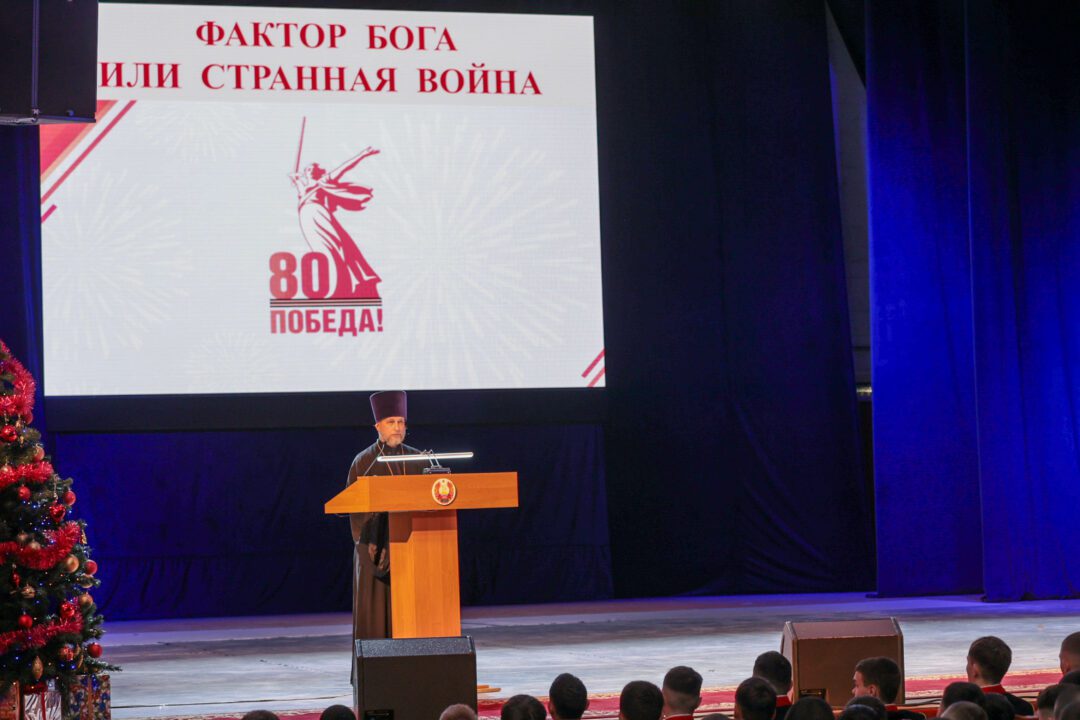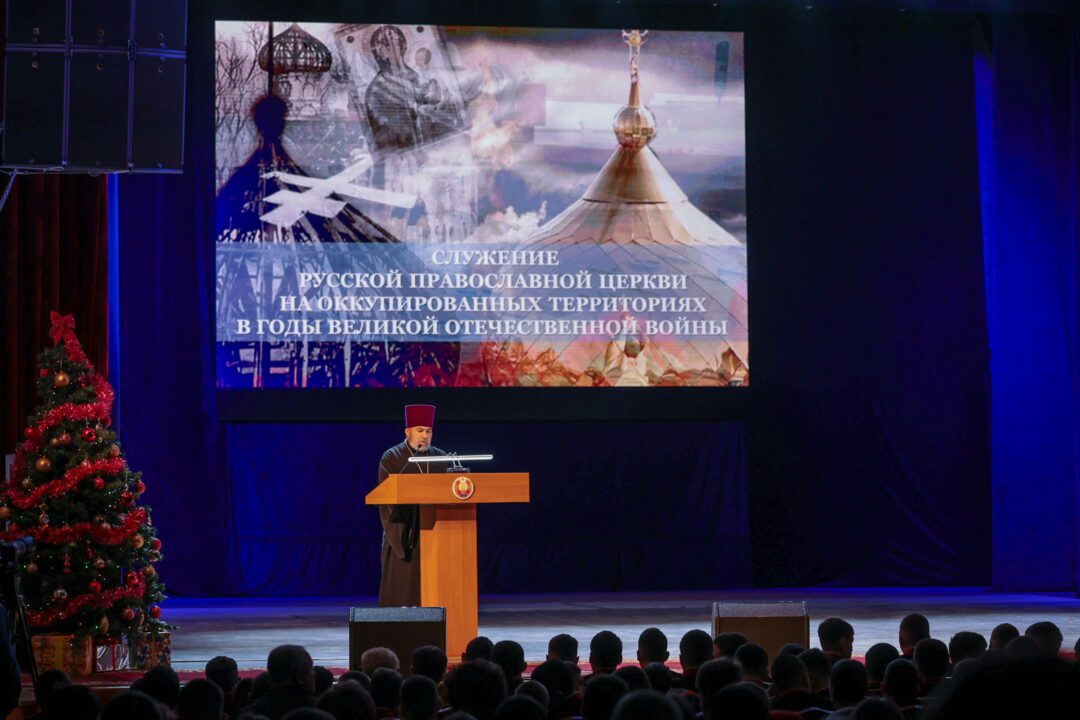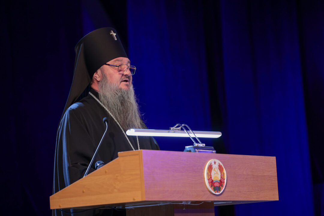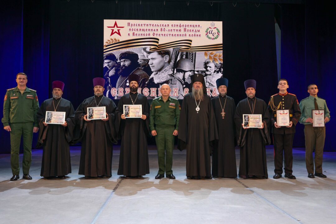 В этом году совместную конференцию посвятили 80-летию Победы советского народа в Великой Отечественной войне. Докладчиками конференции «Священная война», ставшей уже четвертой по счету, стали войсковые священники, курсанты Военного института Министерства обороны и Тираспольского Суворовского военного училища. В числе слушателей – военнослужащие министерств обороны и юстиции, Оперативной группы российских войск, суворовцы и курсанты Военного института, кадеты МВД и курсанты Тираспольского юридического института, представители Черноморского казачьего войска, юнармейского движения республики и ОГРВ, военно-спортивного клуба «Барс» Республиканского союза защитников Приднестровья, спортивно-патриотического клуба «Наследники Побед», студенты государственного университета. Площадкой для столь масштабной конференции стал большой зал столичного Дворца Республики. В приветственном обращении к собравшимся Архиепископ Тираспольский и Дубоссарский Савва отметил, что особенную радость вызывает то, что просветительские совместные конференции за последние годы стали неотъемлемой частью жизни. «В нынешнем году мы с вами торжественно отметили 80-ю годовщину Победы советского народа в Великой Отечественной войне. Также неоднократно становились участниками мероприятий, которые проводились в рамках Года приднестровского народа. Конференция «Священная война» – своеобразное подведение итогов прошедших праздников», – подчеркнул Архиепископ Тираспольский и Дубоссарский Савва. Владыка Савва также напомнил слушателям о духовных предпосылках Великой Победы с момента распространения христианства по миру и о качествах, которыми должны обладать мужчины – защитники Отечества. Министр обороны генерал-лейтенант Олег Обручков, приветствуя участников и слушателей конференции, напомнил им об основных исторических событиях, проходивших в период Великой Отечественной войны на территории Приднестровья и о судьбе молодых людей, столкнувшихся со страшной войной. «Великая Отечественная война коснулась каждого человека, каждой семьи и дома. Война оставила нестираемый след на полотне истории нашего края. Годы больших испытаний, выпавших на долю нашего народа, сплотили его и выдвинули плеяду настоящих героев, подвиги которых стали достоянием нашей истории. Нам, как потомкам, важно усвоить главный и сакральный смысл Победы – фашистов победили именно славянские народы, объединенные менталитетом победителей и несгибаемого советского человека. В светлые дни празднования Великой Победы в наших сердцах отливаются три главных победных слова – память, восхищение и гордость. Выражаю надежду, что содержание докладов, затрагивающих фундаментальные вопросы поддержания мира на нашей земле, позволит укрепить уверенность в сохранении исторической памяти о подвигах наших предков и усилит нашу православную веру», – отметил в приветственном слове министр обороны. Формат конференции предусматривал выступления с докладами. Продолжалась она более двух часов. В докладах были рассмотрены вопросы, касающиеся служения и подвигов войсковых священников в период Великой Отечественной войны, роли православной веры в победе народа над фашизмом, героизме и роли каждого человека в сражении добра и зла. Подводя итоги конференции, Архиепископ Ти