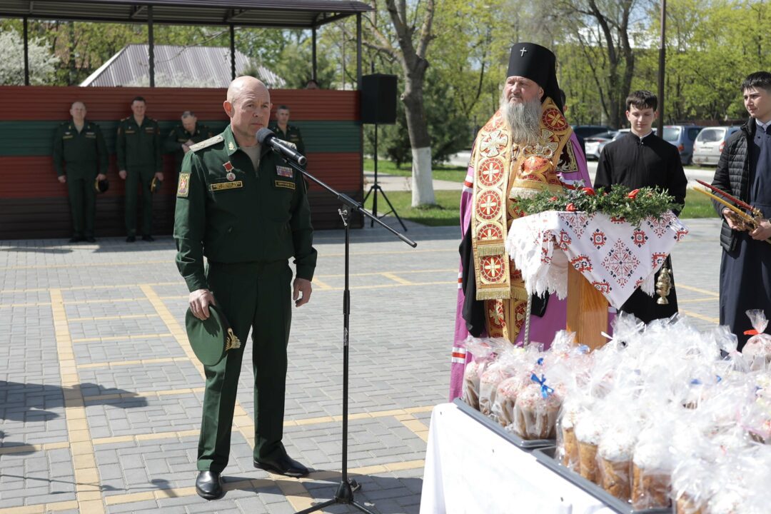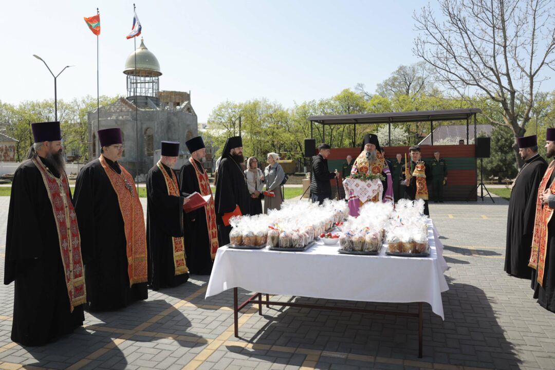 По традиции в Светлую седмицу Правящий Архиерей совершил праздничный Пасхальный молебен для военнослужащих Вооруженных сил и курсантов Военного института и Суворовского училища.В мероприятии приняли участие министр обороны генерал-лейтенант Олег Обручков, Архиепископ Тираспольский и Дубоссарский Савва, священнослужители Тираспольско-Дубоссарской епархии и войсковые священники, руководящий состав и военнослужащие Вооруженных сил, курсанты Военного института и суворовцы. По окончании Пасхального молебна Правящий Архиерей поздравил личный состав Вооруженных сил со Светлой седмицей, святой водой окропили каждого военнослужащего и учащегося. «Пасха – это очень важный праздник. Праздник, когда мы можем собраться все вместе. И сегодня вместе с товарищами из Суворовского училища мы по традиции прибыли в Военный институт, чтобы принять участие в Пасхальном молебне. Мне очень приятно, что вместе с моими товарищами я могу разделить традиции моей семьи, в которой очень любят этот праздник», – отметил один из воспитанников Тираспольского Суворовского военного училища. В Светлую седмицу военнослужащих по призыву одарили пасхальными куличами, как олицетворением величия праздника Пасхи и символа любви Господа к человеку. Навигация по записям Восьмиклассникам рассказали об армии В Военном институте почтили память генерал-лейтенанта Александра Лебедя